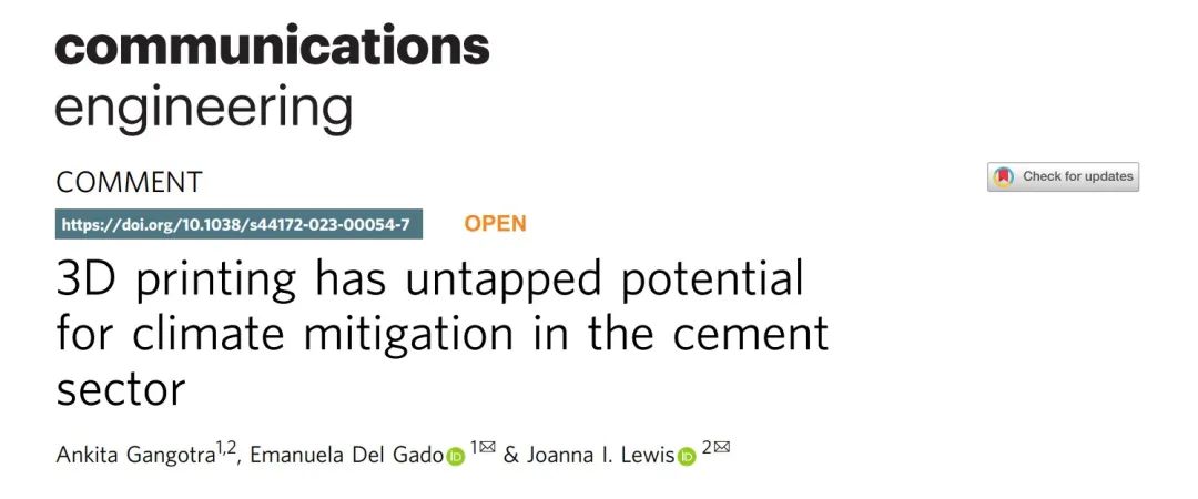 因此,由 Ankita Gangotra、Emanuela Del Gado 和 Joanna I. Lewis 组成的研究团队一直在研究使用水泥和相关材料进行 3D 打印的可能性,他们都在美利坚合众国乔治城大学工作气候保护。关于这个令人兴奋的建筑行业水泥 3D 打印项目,您可以在发表在《Commun Eng》期刊上的题为“3D printing has untapped potential for climate mitigation in thecement sector”研究论文中找到进一步信息。
