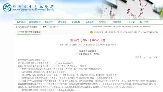 处罚决定文书号:邯环罚〔2023〕02-237号