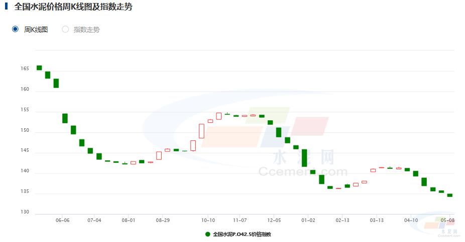 进入5月,多地市场需求持续偏弱运行,企业出货量不高,安徽、浙江、河南等地水泥价格再次出现下滑。