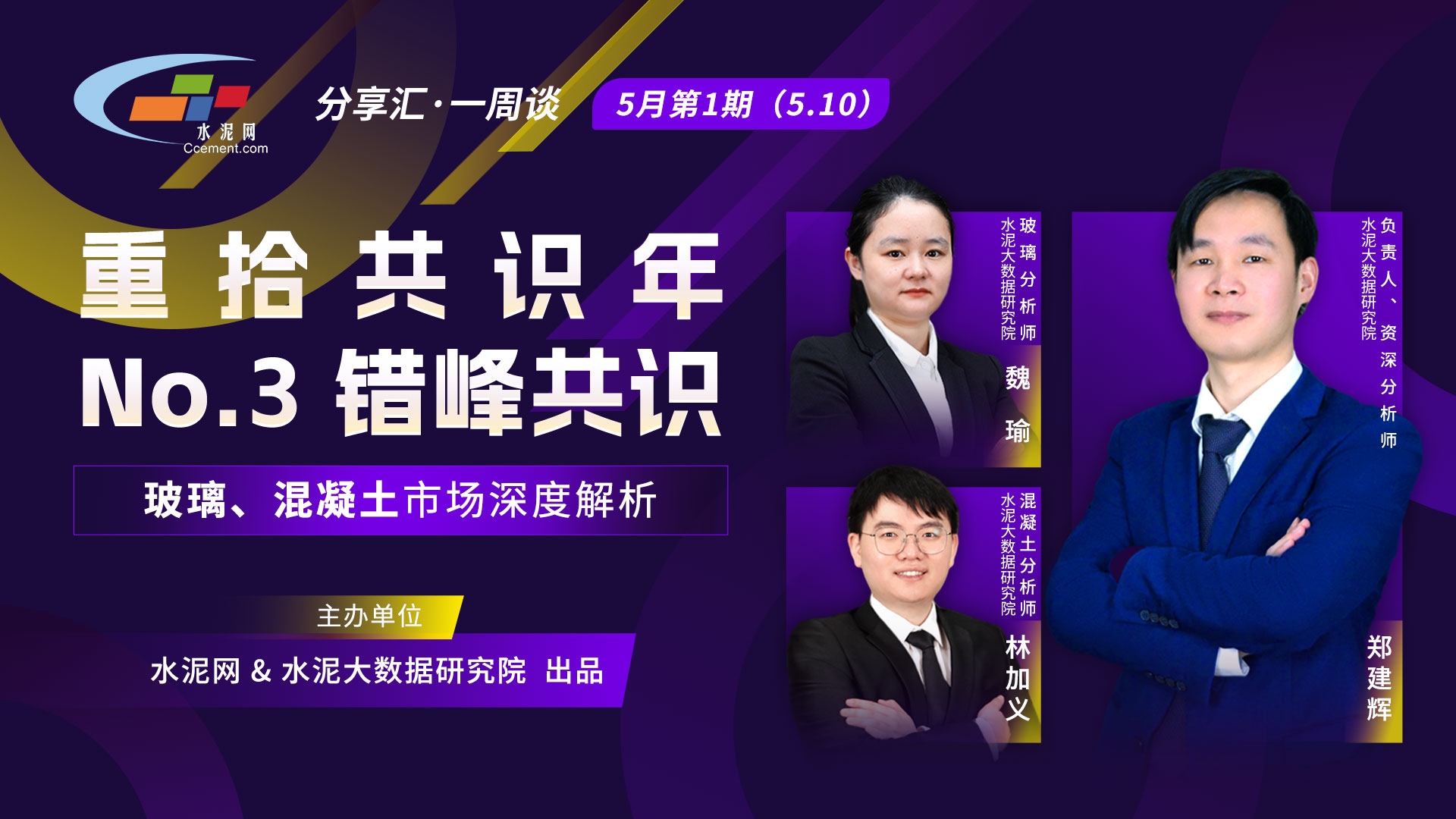此外,中国水泥网·水泥大数据研究院玻璃分析师魏瑜和混凝土分析师林加义也将在直播中,分别针对玻璃行业和商混行业近期行情进行深入探讨,并分析接下来的行情走势。