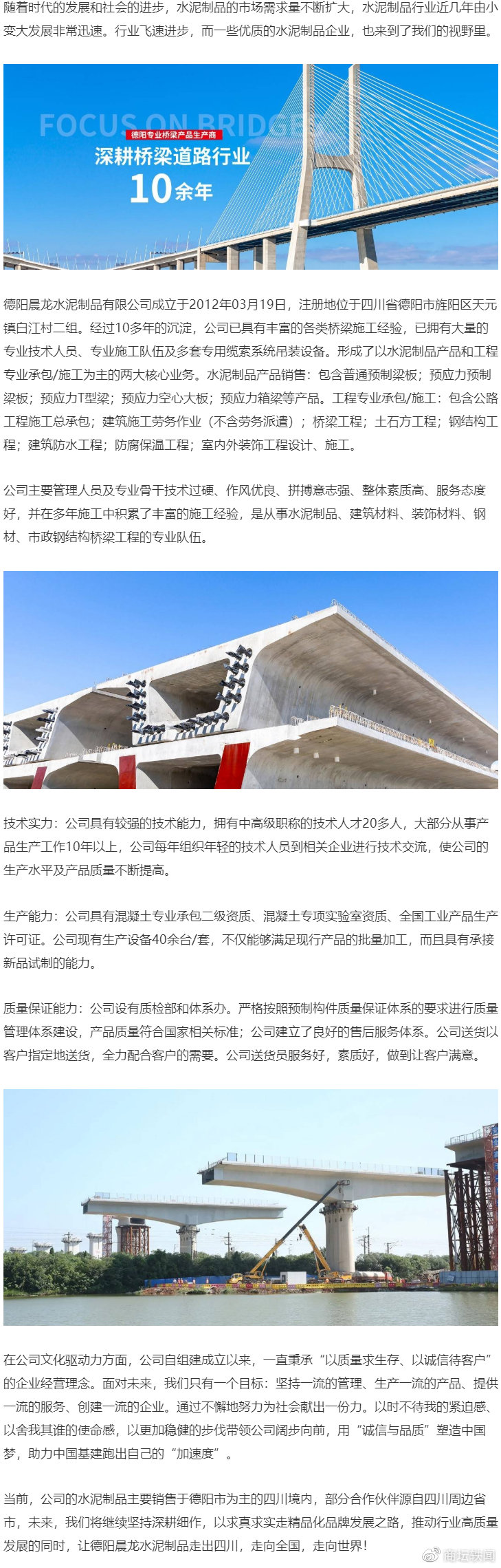 德阳晨龙水泥制品:质量为先推动中国基建高质量发展!