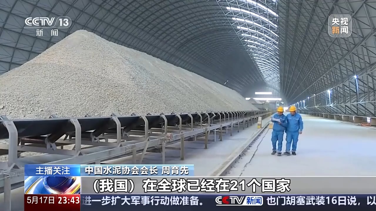 中国水泥协会会长 周育先:中国的水泥可以为共建“一带一路”的国家,去提供水泥投资以及水泥厂。到2024年底为止,我国在21个国家建成了有46条水泥的生产线,一年的水泥产能9800多万吨,今年一定会过亿。