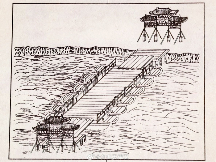 #天津生日快乐# 明成祖朱棣南下渡河处北码头,分立两岸的分别是“龙飞”、“渡跸”牌坊,于清初架起浮桥,是为北浮桥,因户部钞关在桥北,所以也叫钞关浮桥。清末,改建为机器开启的铁桥,名金华桥。20世纪70年代,铁桥拆除,改建钢筋水泥桥,河北大街拓宽后,桥也加宽,仍叫金华桥。