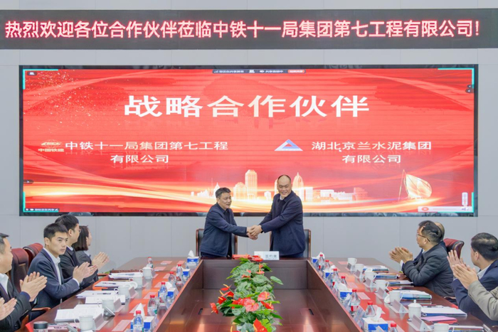 2025年12月12日,湖北京兰水泥集团有限公司与中铁十一局集团第七工程有限公司战略合作签约仪式在热烈庄重的氛围中圆满举行。这一重要时刻不仅载入京兰水泥的发展史册,更标志着双方秉持“优势互补、共创共享、共赢未来”的理念,正式开启全方位、深层次的战略协同新篇章。