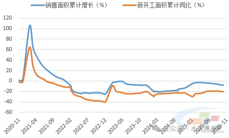 2025年12月中央经济工作会议指出,加快构建房地产发展新模式,着力稳定房地产市场,因城施策控增量、去库存、优供给,鼓励收购存量商品房重点用于保障性住房等。这表明政策端重点在于消化存量库存,控制新增,房地产市场企稳回暖仍将需要一定时间。从销售面积和新开工面积看,二者仍目前处于缓慢企稳状态,短期内难以明显转好,预计2026年投资端仍将下降,但幅度会有收窄,预计地产端水泥消费同比仍将出现下滑。